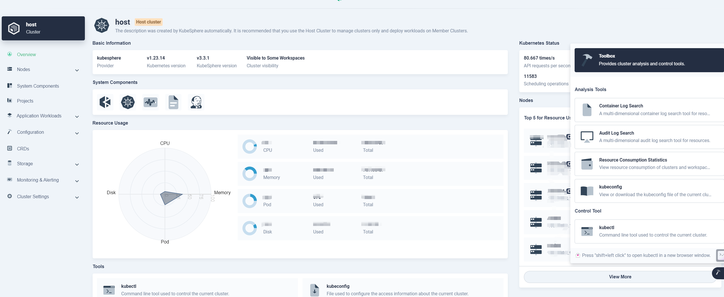 $ kubectl edit cc -n kubesphere-system ks-installer