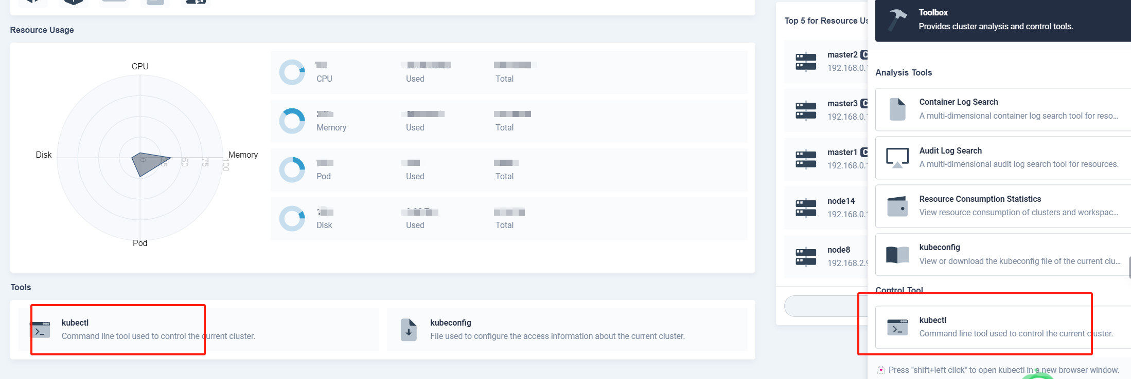 You can find the kubectl tool by clicking on the lower-right corner of the console.